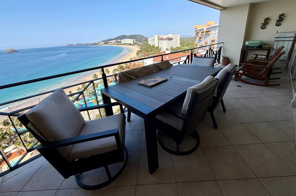 Our condo has stunning views from the 12th floor and the balcony overlooks the sweeping curve of the beach and Ixtapa Bay, facing southwest so you can savour the exquisite sunsets every evening; they are breathtaking! The balcony is a perfect place to have dinner al fresco while watching the fabulous Ixtapa sunsets.