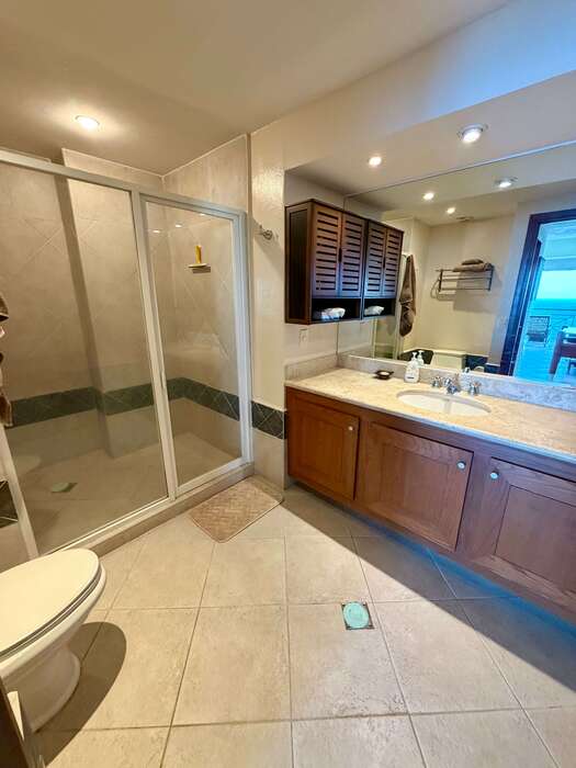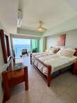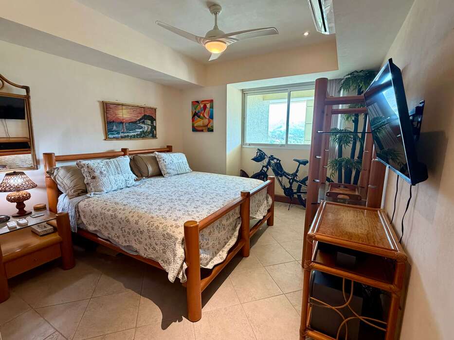 The master bedroom walks out onto the balcony and has a king-sized bed, remote-controlled ceiling fan and a large ensuite bathroom. The second bedroom also has a king-size bed and the windows look east over Ixtapa village and the golf course to the mountains and the sunrise. It has its own three-piece ensuite bathroom.